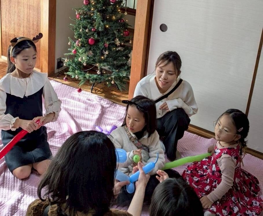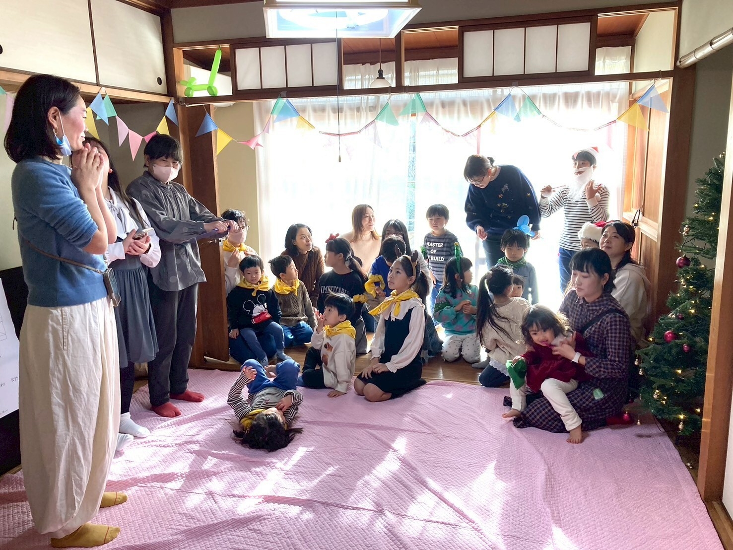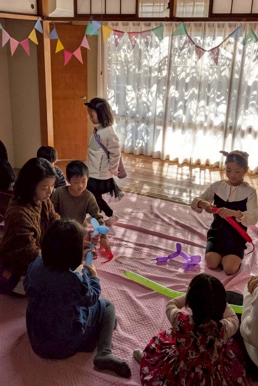 まず、到着した子ども達から、ツリーを組み立てたりバルーンを作ったり、会場作りをしました。