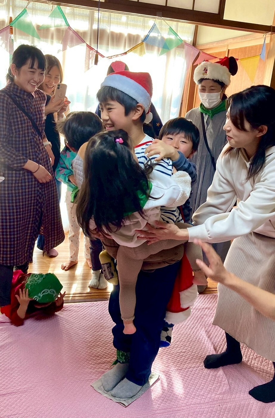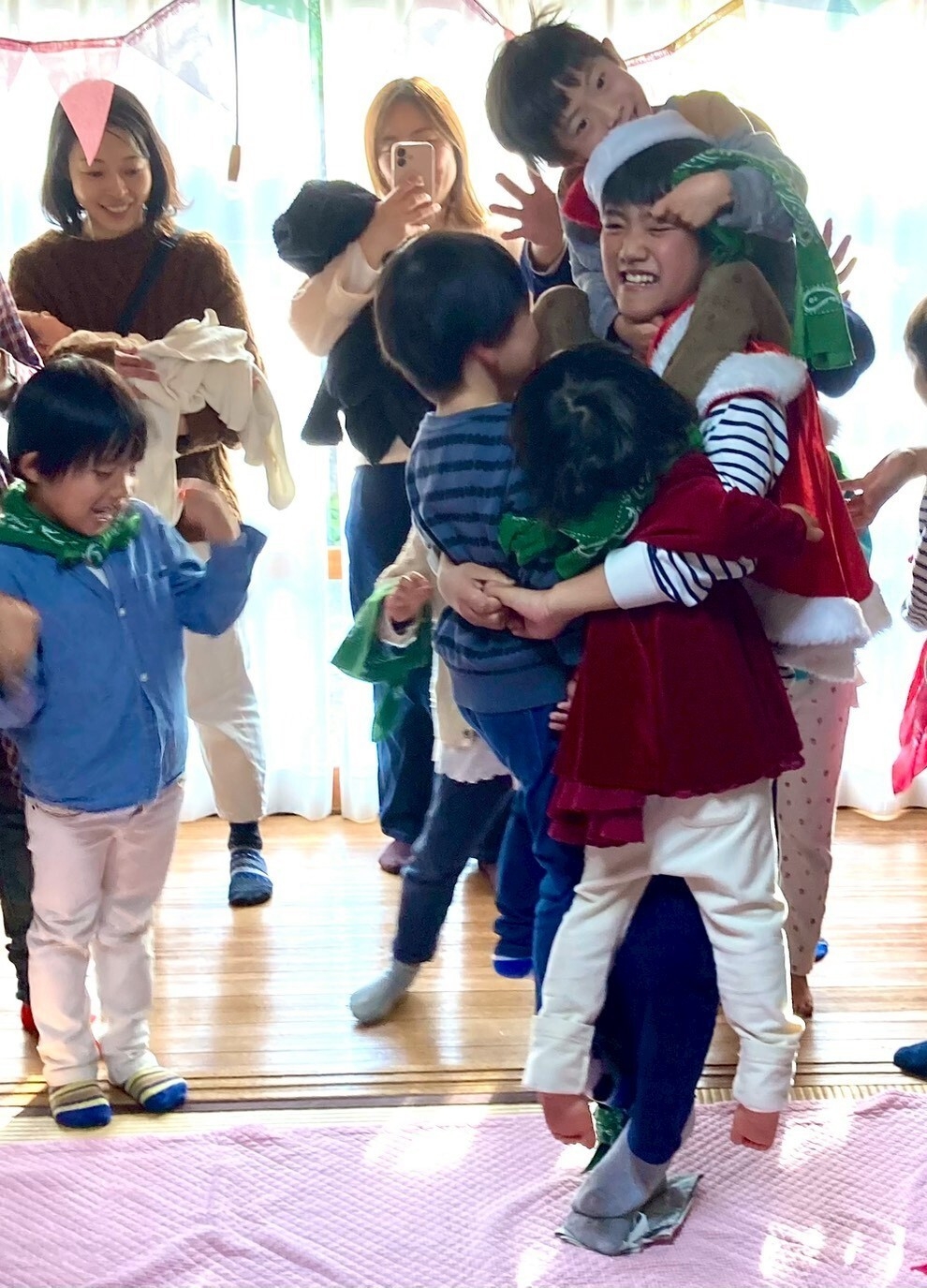 おんぶに、抱っこ、くっつき虫作戦で、応援のお母さんたちも、盛り上がりました。
