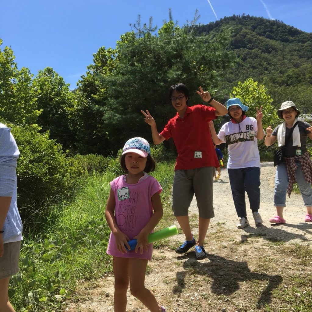5班は、リーダーよっしー(小6)、サブリーダーりょうや(大学生)と、りょう(大学生)と、さやか(青年)でした。りょうやは、2日目からの参加です。